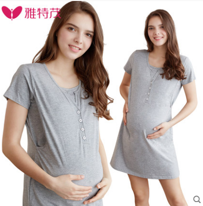 • 雅特茂 孕婦春裝短袖莫代爾連衣裙夏季哺乳睡衣產(chǎn)婦睡裙家居服薄